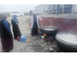 Adıyaman'ın Samsat Halk Eğitim Merkezi usta öğreticiler depremzede vatandaşlara yemek yapıyor.