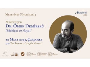 Van Valisi ve Büyükşehir Belediyesi Başkan Vekili Ozan Balcı'nın himayelerinde başlatılan Akademi Van Projesi bünyesinde Dr. Ömer Demirbağ "Edebiyat ve Hayat" konusu üzerinde 22 Mart Çarşamba günü saat 13.30'da Van İpekyolu Gençlik Merkezinde gençlerle bir araya gelecek.