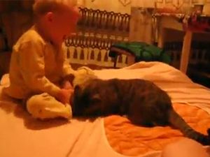 Bebek ve kedinin komik kavgası
