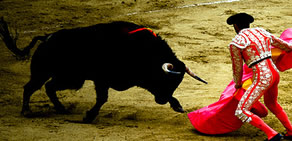 Yüzlerce kişinin önüne gösteri için çıkarılan boğa, birden yakalaşık 1 buçuk metre yüksekliğindeki tribünlere atladı, insanların arasına daldı.