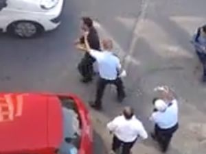 Beyoğlu Fındıklı'da yol kontrolü sırasında bir vatandaşla tartışan polis, adeta bir boksör gibi üst üste yumruk salladı.