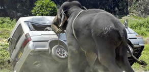 Ormanın içinden çıkan filin arabaya saldırması böyle görüntülendi..
