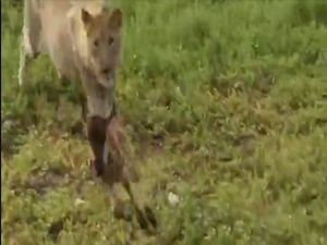 Aslan, peşinden koştuğu avını en son yakalıyor ama yemek yerine farklı şeyler yapıyor...