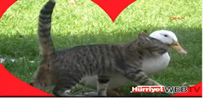 Düzce'de, kedi ile ördeğin dostluğu görenleri şaşırtıyor. Akçakoca Osmaniye Mahallesi'nde emlakçılık yapan Davut Topal'ın bahçesinde bulunan Elmas isimli ördek ile sokakta yaşayan kedinin dostluğu herkesin ilgisini çekiyor.