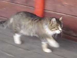 Tatlı kedi çiftlikte yaşaya yaşaya artık atlar gibi yürümeye başlamış