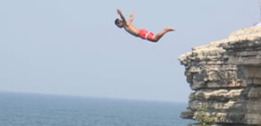 20 metre yükseklikten denize atlıyorlar.