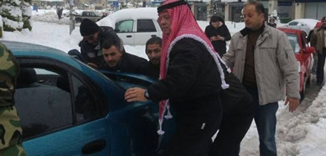 Karla kaplanan Ürdün'ün başkenti Amman sokaklarında yolda kalan bir sürücünün imdadına Ürdün Kralı Abdullah yetişti.