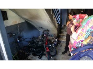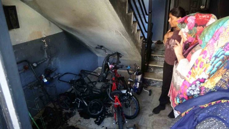 Olay yerine gelen itfaiye yangını kısa sürede söndürürken, binada bulunan ve dumandan etkilenenler için ambulans hazır bulunduruldu. Elektrik panosundan çıktığı iddia edilen yangının panodan çıkmadığı, evin girişinde bulunan çocuk arabası ve bisikletlerin yandığı belirlendi.