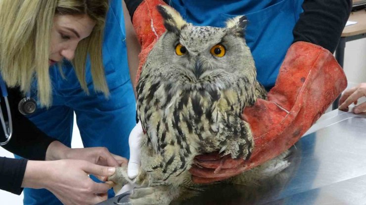Siirt'te vatandaşlar tarafından yaralı olarak bulunan ve nesli tükenme tehlikesi altında olan Bayağı puhu (Bubo bubo) kuşu, tedavi altına alındı.