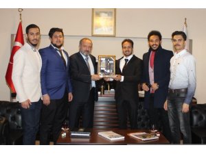 Ziyaretin sonunda Rektör Çufalı'ya Yemenli öğrenciler tarafından hediye takdim edildi.