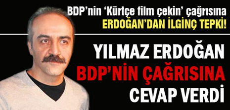 Yılmaz Erdoğan: Ben hazır fırsat bulmuşken. BDP Başkanı Selahattin Demirtaş'ın kongrede yaptığı çağrıya cevap vermek istiyorum. "Yılmaz Erdoğan ve Mahsun Kırmızıgül gibi sanatçılara ana dillerinde film çekmeleri çağrısında bulunuyoruz" demişti. Mutlaka iyi niyetli bir çağrıdır. Ama siyasetin sanat üzerinde bu tip çağrılar yapması da pek hoş değil. Siyaesetin sanatçılara ne yapması gerektiğini söylemesine de gerek yok. Tabi bu iyi niyetle yapılmış bir çağrıdır. Kongrelerde yapılacak popülist çağrılarla çözüme gidileceğini sanmıyorum. Ben Vizontele filminde de Kürtçe altyazı kullandım. Yani bu yanıyla zaten bir duyarlılığımız var.