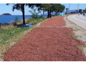 Giresunlu üreticiler topladıkları fındığı kurutabilmek için şehir içindeki yolları ve sahil boyundaki yaya kaldırımlarını adeta fındık harmanı haline getirdi.