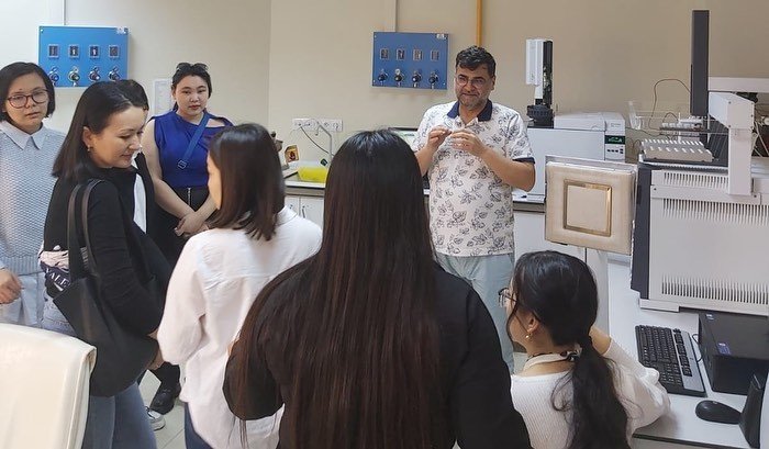 Kazak Ulusal Kadınlar Pedagoji Üniversitesi'nden NEVÜ'ye staj yapmak üzere gelen 14 kişilik yüksek lisans öğrenci grubundan Kimya Bölümü öğrencileri, 07-16.03.2023 tarihleri arasında NEVÜ Bilim Teknoloji Uygulama Araştırma Merkezi laboratuvarlarında çeşitli analiz ve deney süreçlerine katıldı. BTUAM Müdürü Dr. Öğr. Üyesi Bülent Zorlugenç ve Memur Hacer Ceran Bal tarafından öğrencilere "İndüktif Olarak Eşleştirilmiş Plazma - Kütle Spektrometresi (ICP-MS/MS)" cihazında element analizinin nasıl gerçekleştirildiği uygulamalı olarak anlatıldı. Öğrencilerin getirdikleri toz numuneler üzerinde gerçekleştirilen uygulamalardan elde edilen sonuçlar öğrenciler ile paylaşıldı.