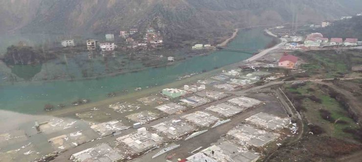 Artvin'de su tutma işlemi süren Yusufeli Barajı'nda baraj suları Yusufeli ilçe merkezindeki sanayi sitesine ulaştı. Sular altında kalan sanayi sitesinde ilginç görüntüler ortaya çıktı.