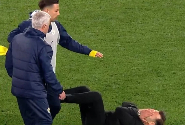 Fenerbahçe ve Galatasaray arasındaki olaylı derbi, maç sonu ilginç görüntülere sahne oldu. Jose Mourinho, Okan Buruk'un burnunu sıktı.